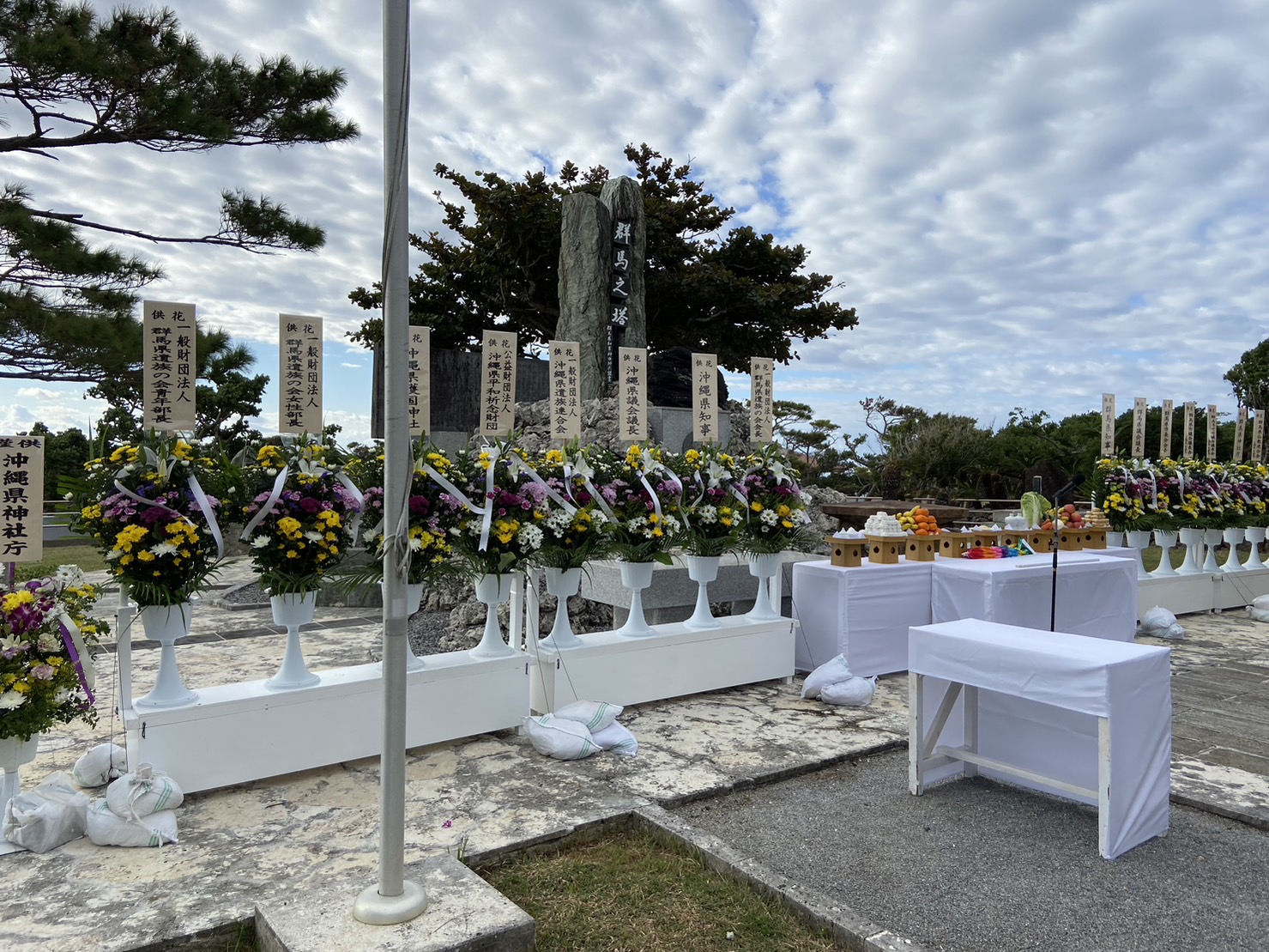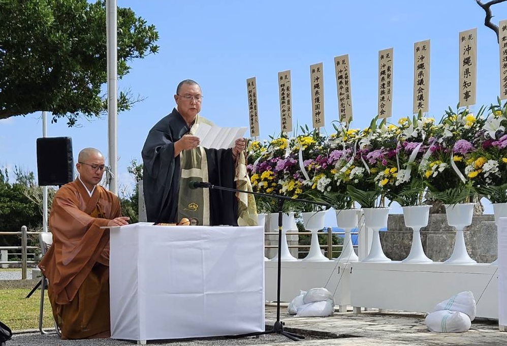 |    財団法人群馬県遺族の会が主催する沖縄「群馬の塔」慰霊参拝に各地区仏教会から毎年派遣をして頂いております。    沖縄を始め南方諸地域で散華された本県出身戦没者慰霊塔の御宝前において、鎮魂と追悼の法要を厳修しております。  |