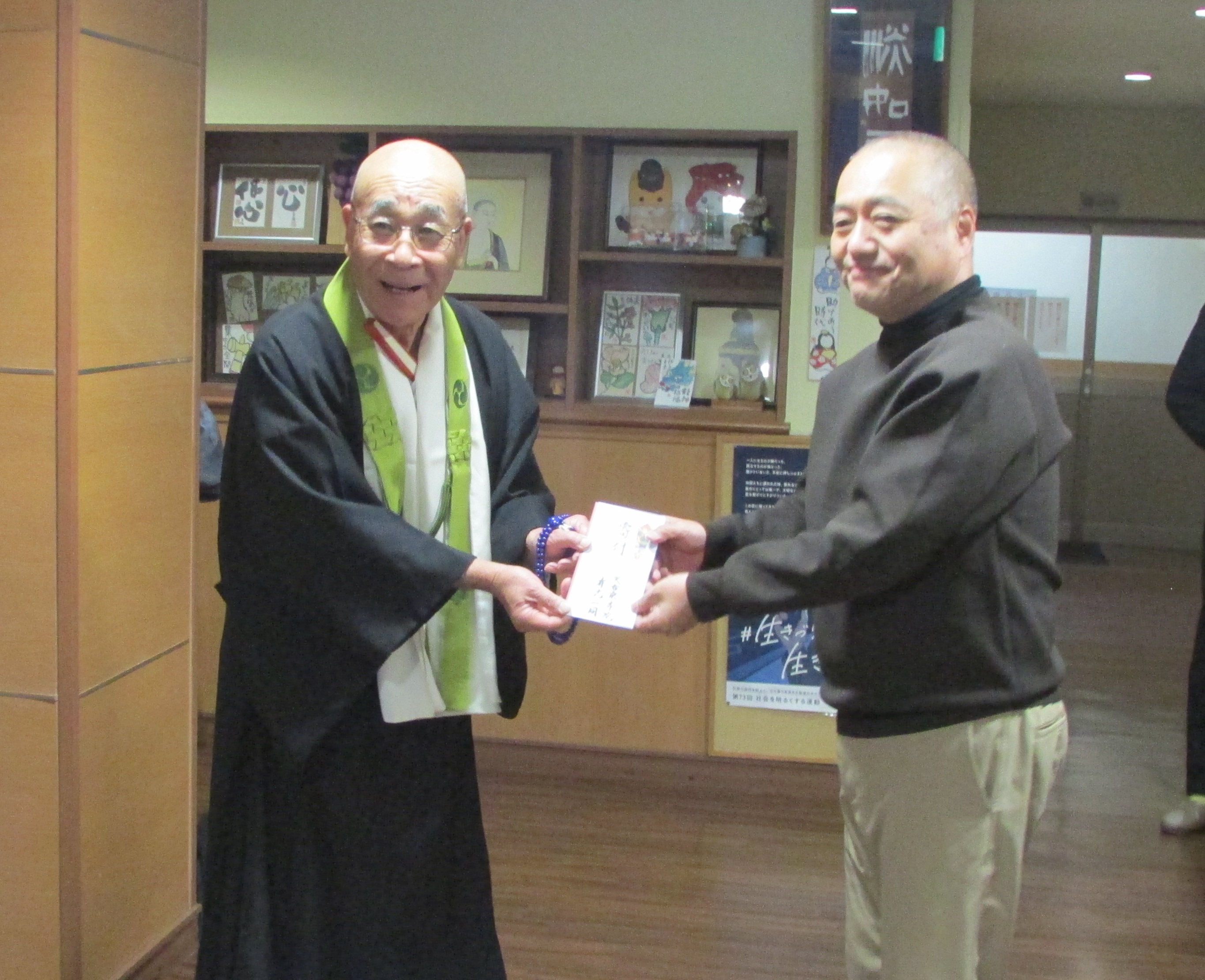 皆様こんにちは。  本日、天台宗寺院有志一同様より多額の浄財、食料品、日用品などの御寄附を頂きました。毎年夏期・冬期の2回、御寄附を頂いております。  寮生のために活用させて頂きます。とても寒い中ありがとうございました。 ![]() ![]()  |