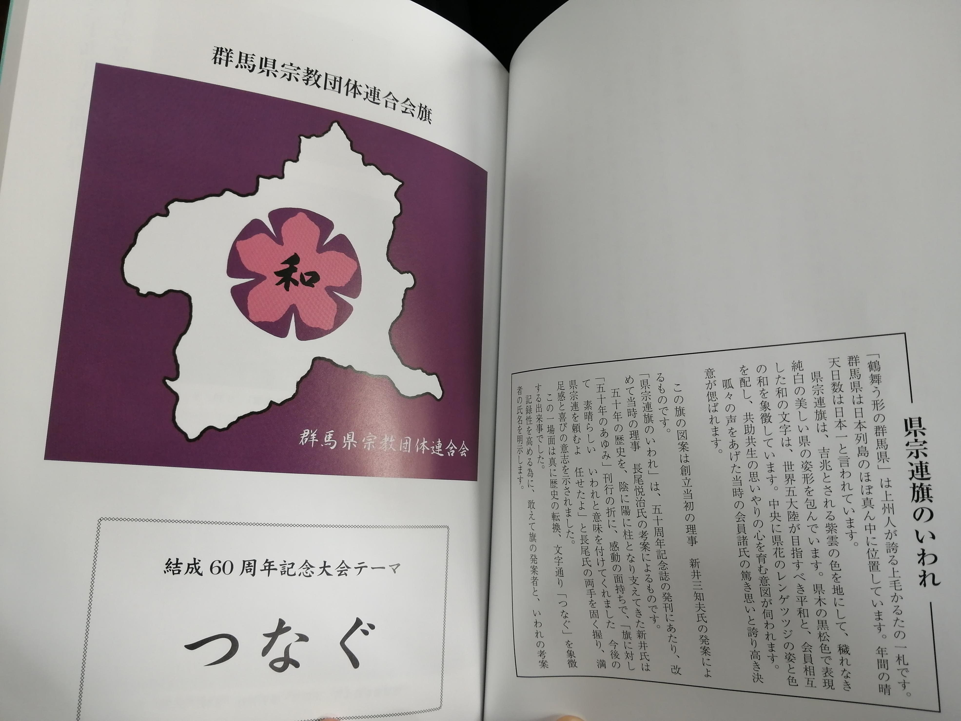 皆様こんにちは。 群馬県宗教団体連合会結成60周年記念誌「六十年のあゆみ」が発行されました。 群馬県宗教団体連合会は仏連、神社庁、天理教、新宗連の県内各宗教団体が個々の宗派・教義という垣根を超えて昭和39年に発足し、社会福祉の向上と世界平和の実現のため着実な歩みを重ねております。令和6年には「つなぐ」をテーマとして結成60周年記念大会が開かれました。 その歴史をまとめたものがこの記念誌です。群馬県神社庁様が中心になって発行して頂きました。 各教団の紹介などが沢山の写真と共に掲載されております。 今後も様々な活動を紹介していけたらと考えております。ありがとうございました。