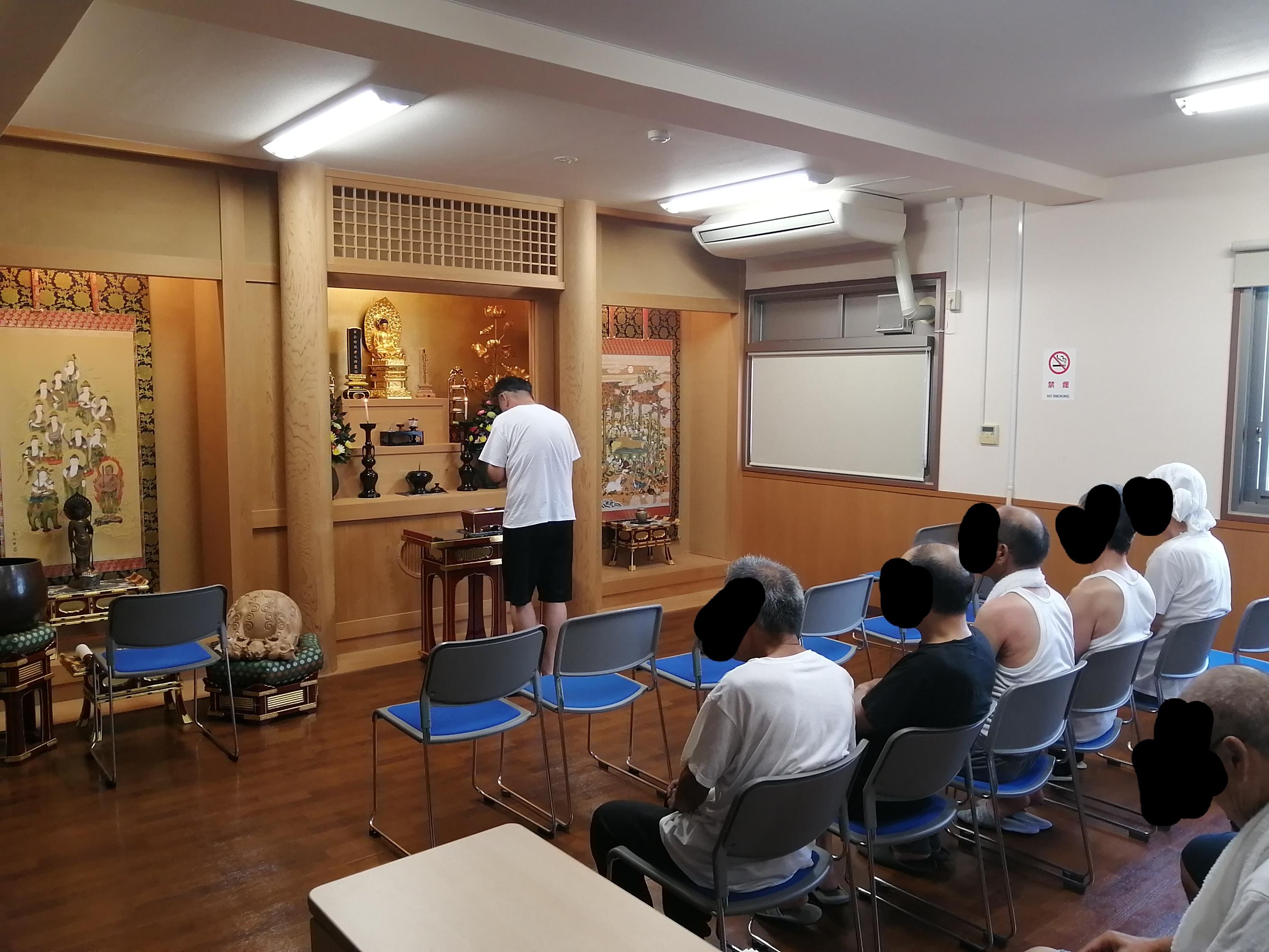 皆様こんにちは。 送り盆のため、3階の仏間にて追善供養を行いました。 当会の寮生の中には家族がいない、家族のもとには帰れないなどで墓参りにも行けない者が多数おります。 中には墓参りやお焼香の経験もない者もおり、やり方を教えながら一緒に般若心経を唱え、先祖の供養をしました。
