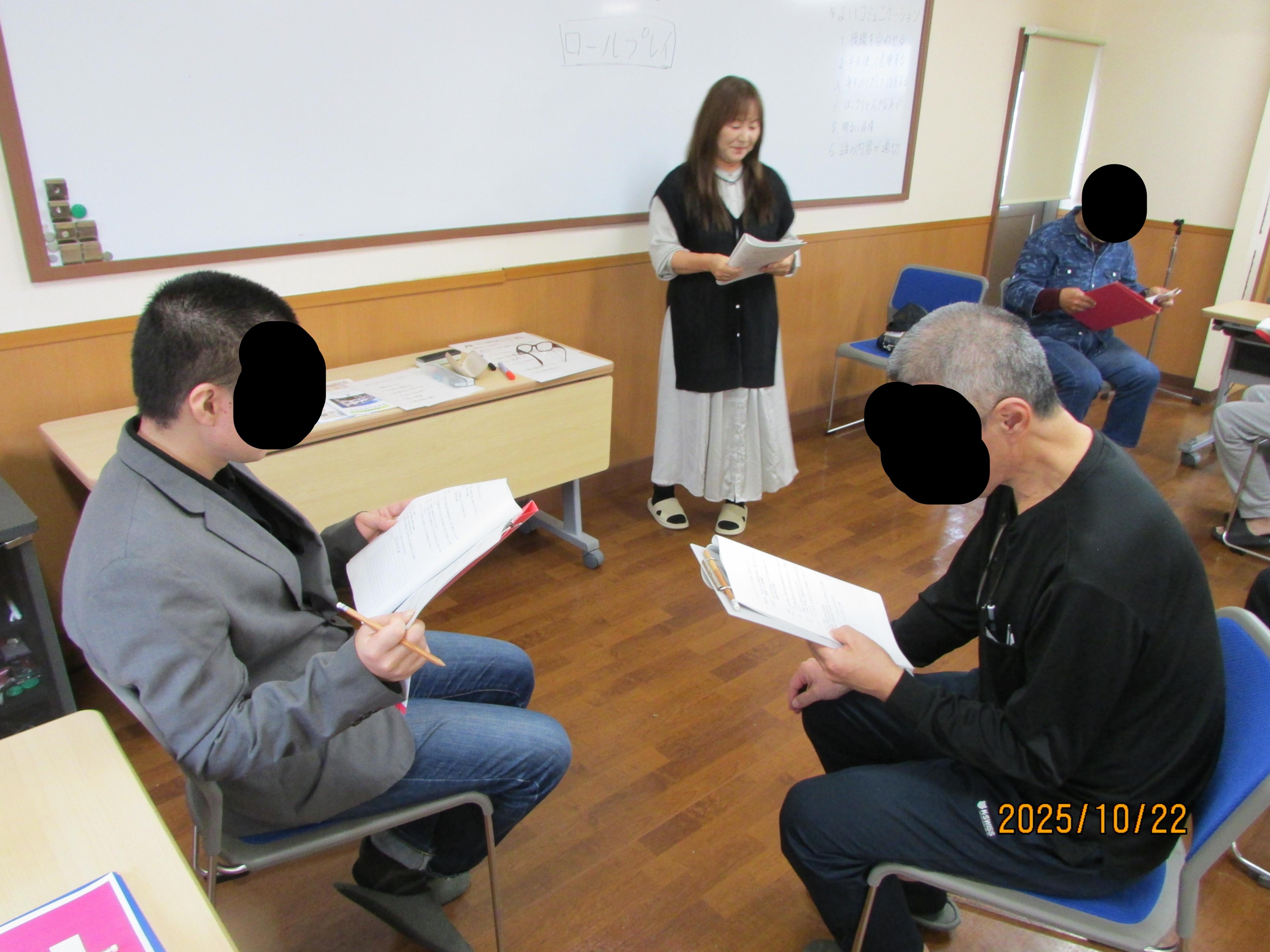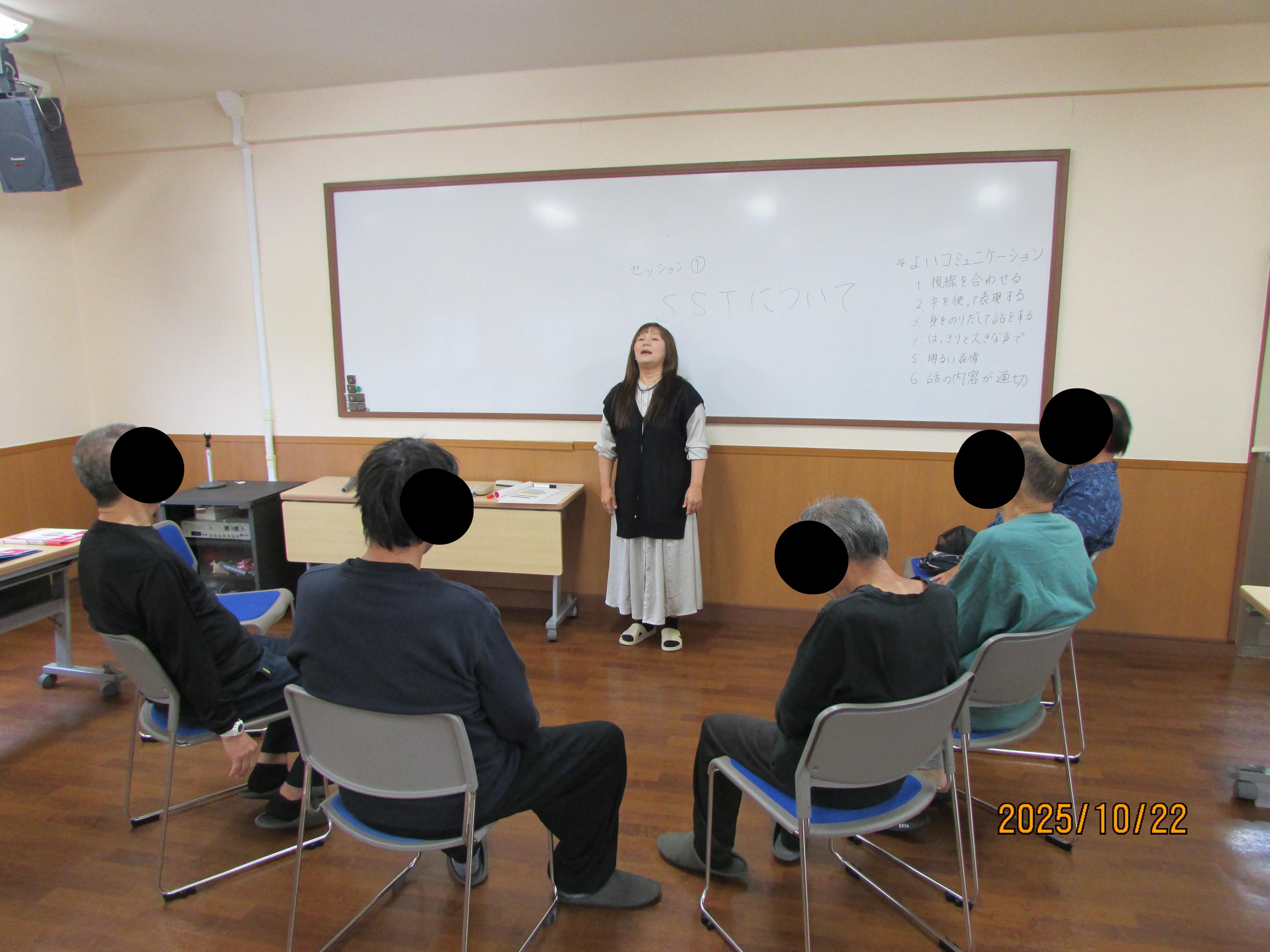 皆様こんにちは。 先日、SST(ソーシャルスキルトレーニング)集会を開催しました。 基本的な挨拶の仕方や言葉遣いなど、社会生活に必要な知識や教養を確認したり身に付けさせるもので、月に一度程度開催しております。仕事で出席できなかった人以外の寮生と、退会した元寮生も参加してくれました。初めての参加の人もいるため、テキストを用いてSSTの説明や他者とのコミュニケーション方法について、実際にロールプレイングを通して学ぶことが出来ました。出席してくれた寮生にはお菓子のプレゼントをしました。