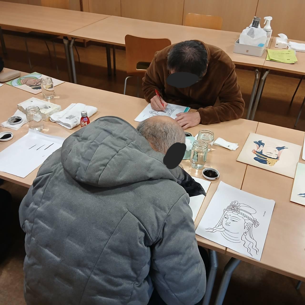 皆様こんにちは。 写仏教室が開催されました。今年度8回目の開催です。 講師である富岡甘楽保護区保護司会元会長の佐藤ふさ江様、群馬県更生保護女性連盟元会長の下田貴美子様に来ていただき、とても和気あいあいと開催することが出来ました。 開催前にまずお経を唱え、初めての人は観音様の絵を描きました。龍ももうすぐ完成??です。 全面改築も控えているので、残り少ない写仏を楽しみたいです。ありがとうございました。